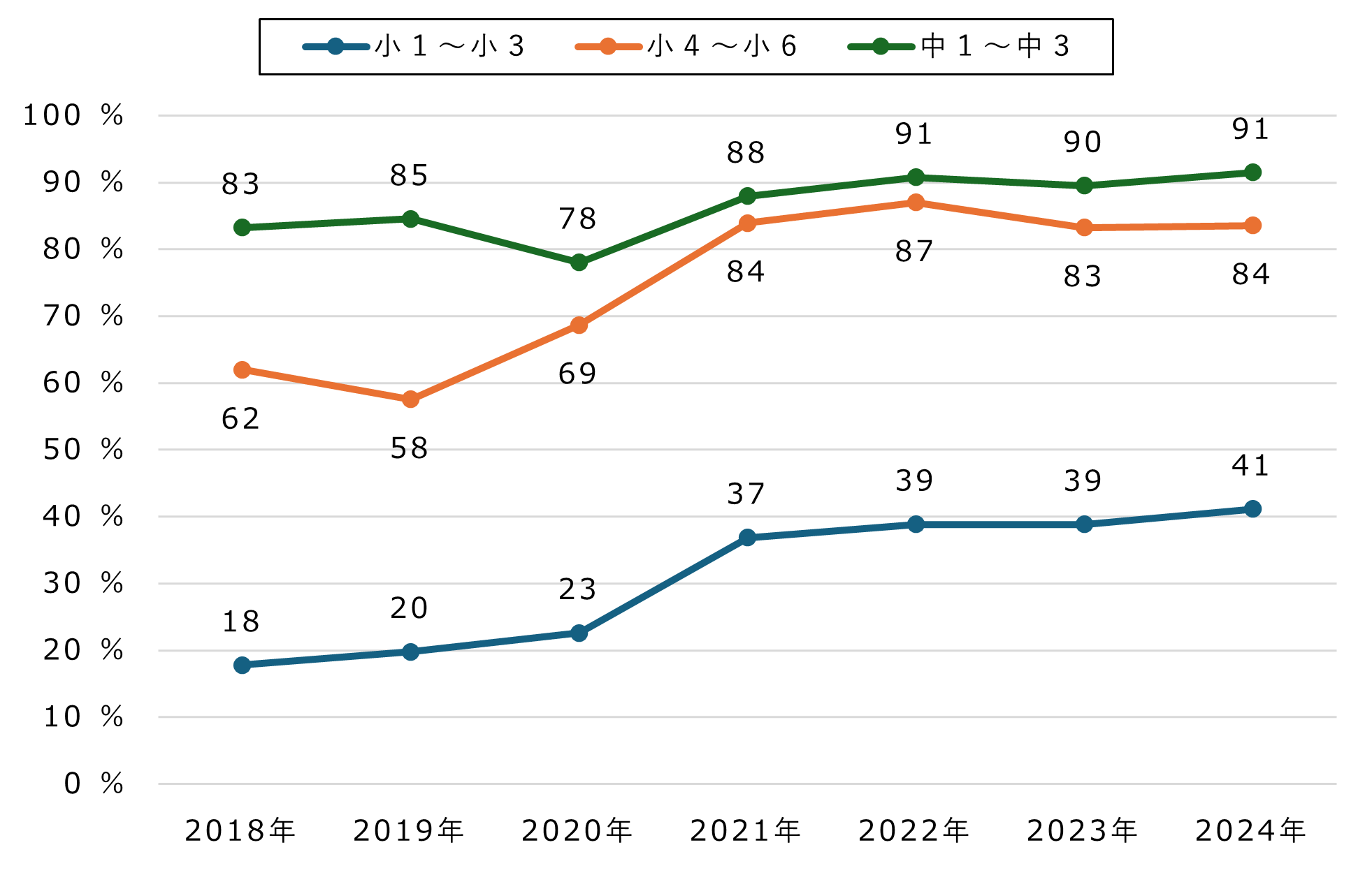 小中学生のスマホ所有率は年々上昇し(2025年1月30日レポート参照)、所有開始時期も早まっています(2025年3月17日レポート参照)。さらに、GIGAスクール構想の進展により、学校での情報機器の利用も広がっています(2025年5月8日レポート参照)。