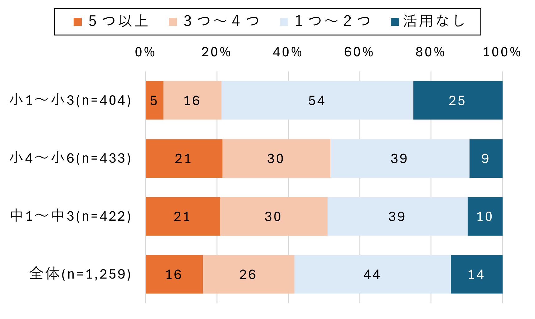 2. 小学生高学年と中学生の活用状況は同水準