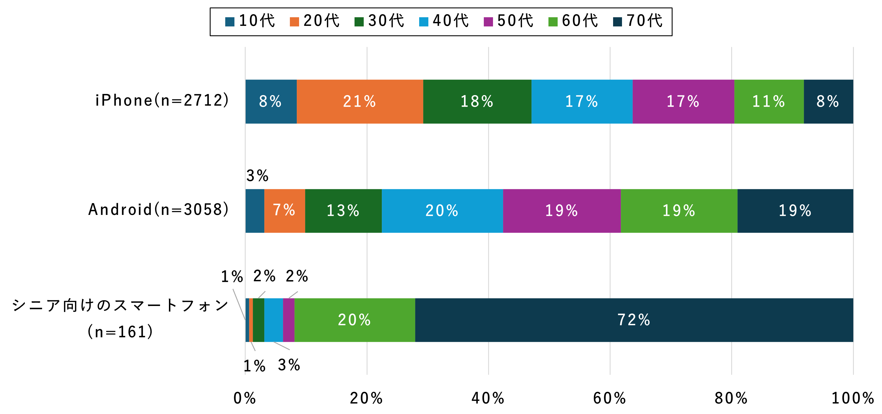 - 利用者の年代 iPhoneは若年層が多い