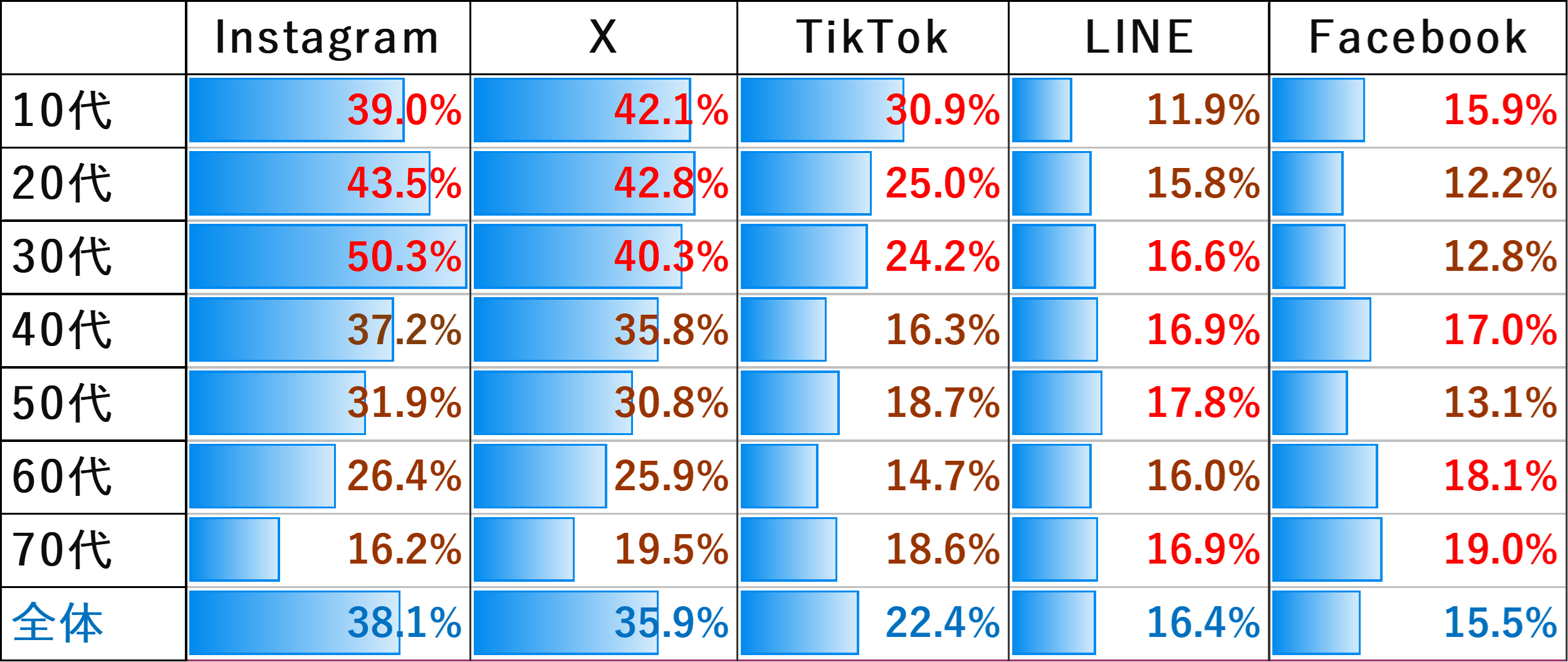 - Instagram利用者・X利用者の約4割がそれぞれのSNSから「生活情報」を得ている。