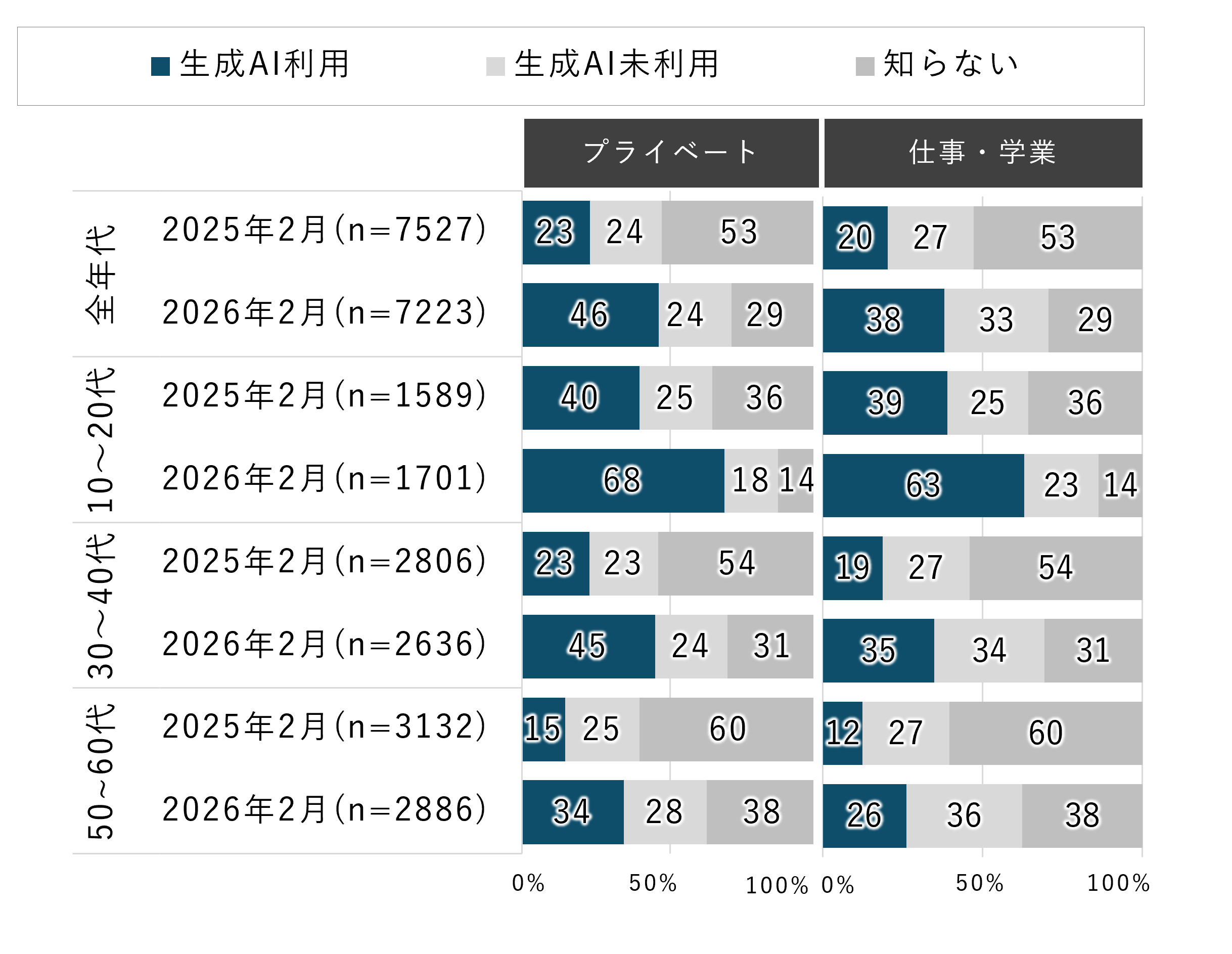 生成AI利用率、過半数に。1年で急増(2026年4月6日)