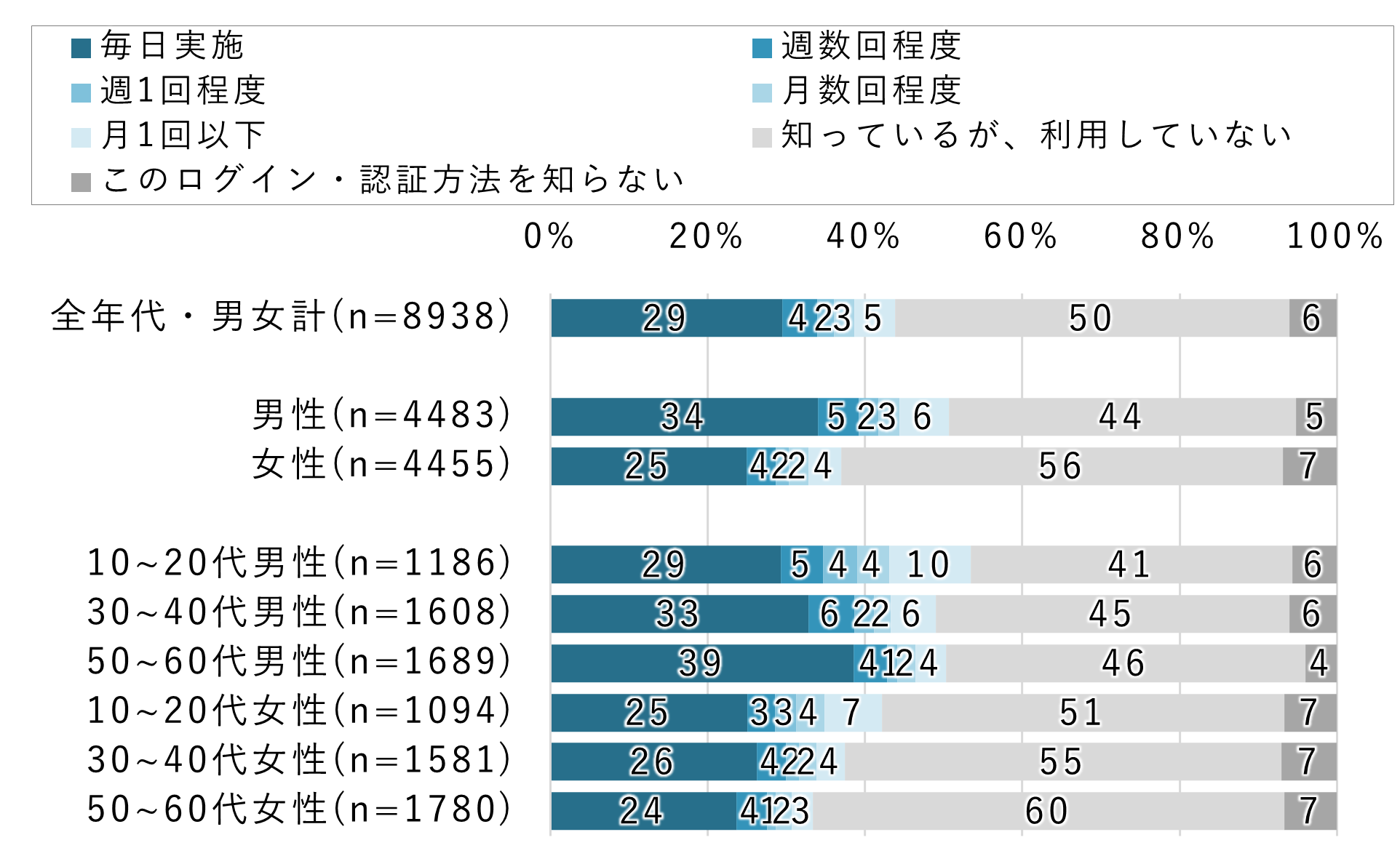 3. パスワード認証は約6割、顔・指紋認証は約3割が毎日利用