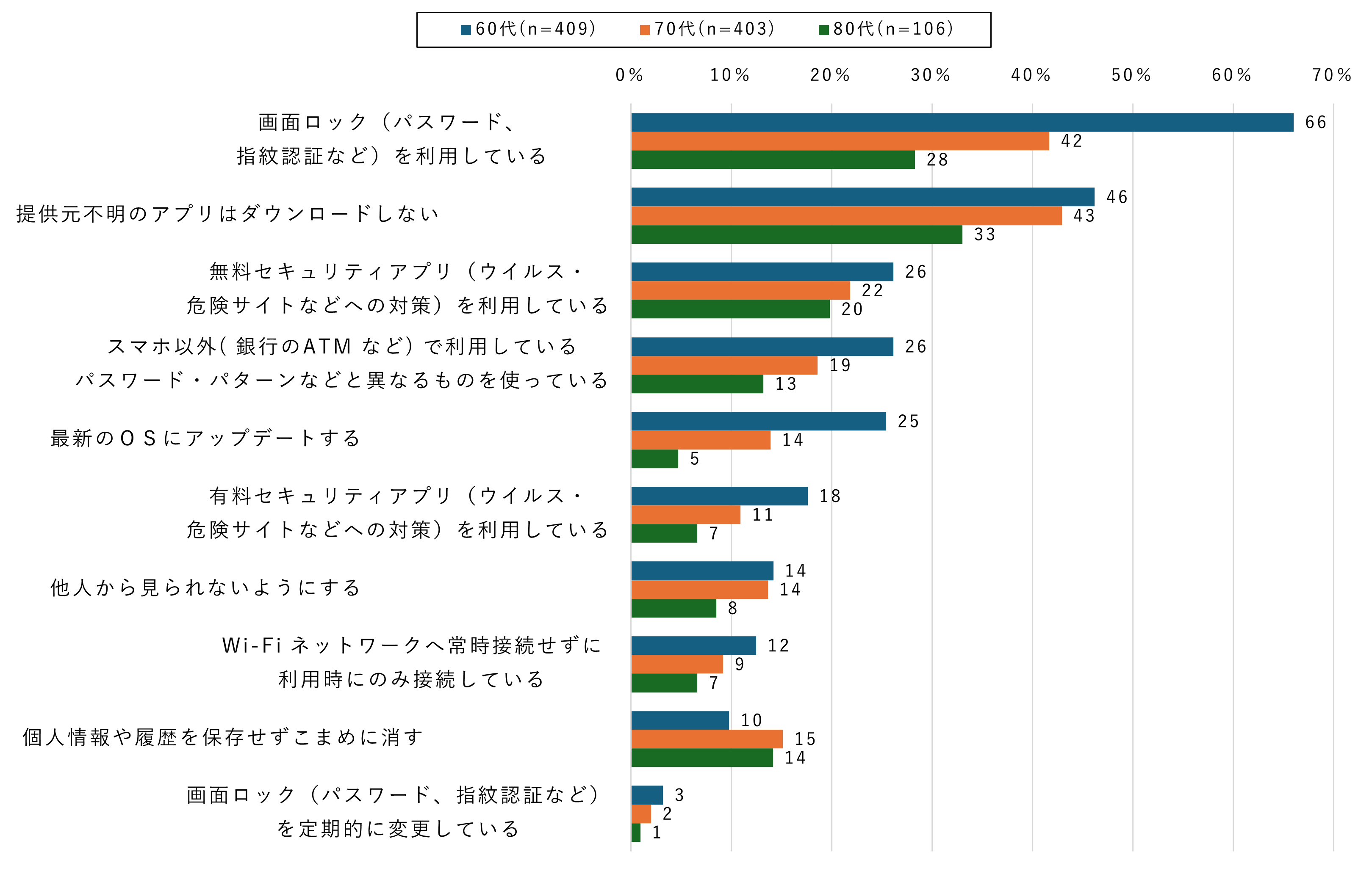 ご自身のスマホセキュリティ対策、70~80代の約6割が十分でない