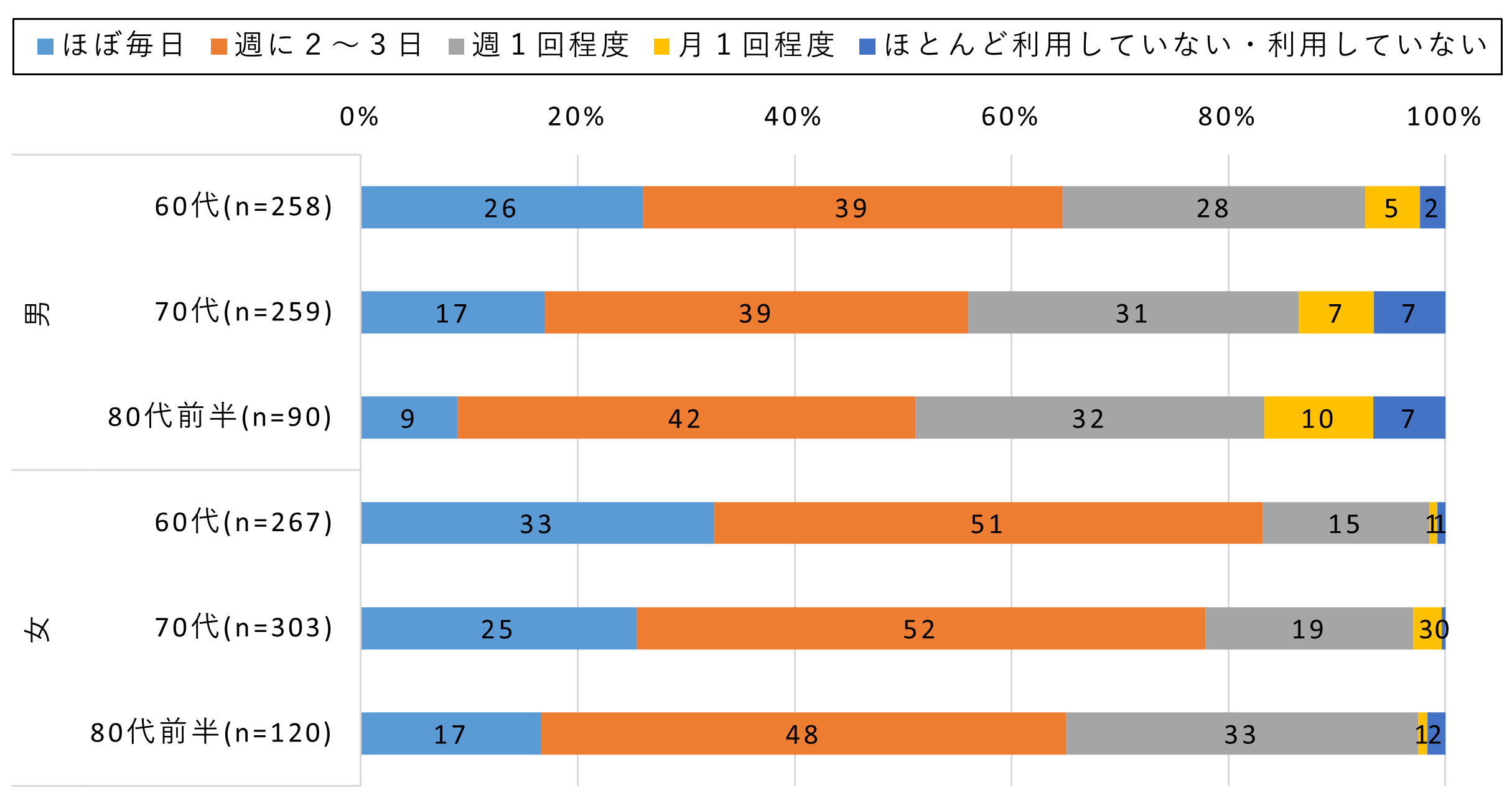 図4. シニア 実店舗(スーパー・コンビニ等)への利用頻度