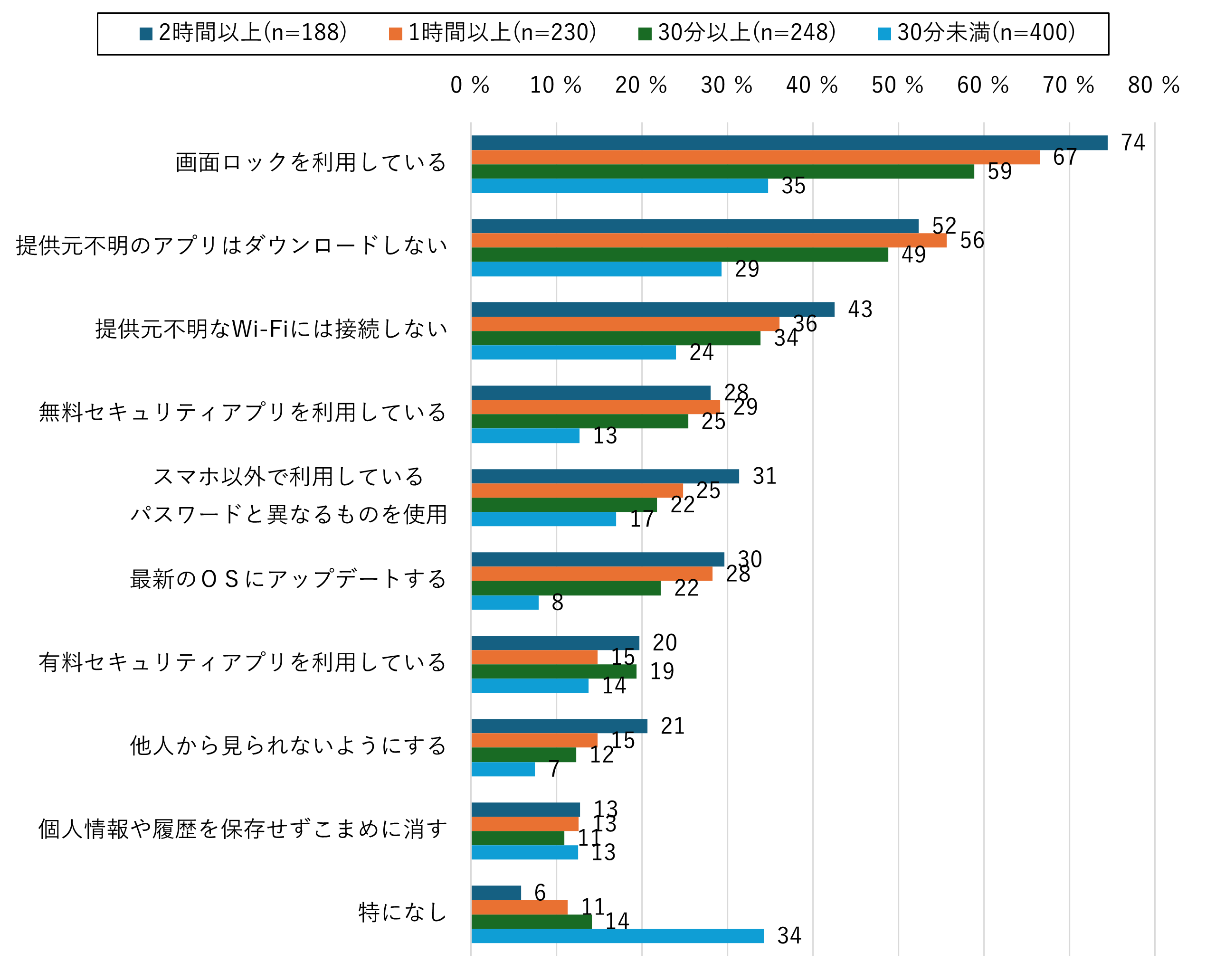 2. スマホの利用時間が長いシニアは多方面の対策を実施