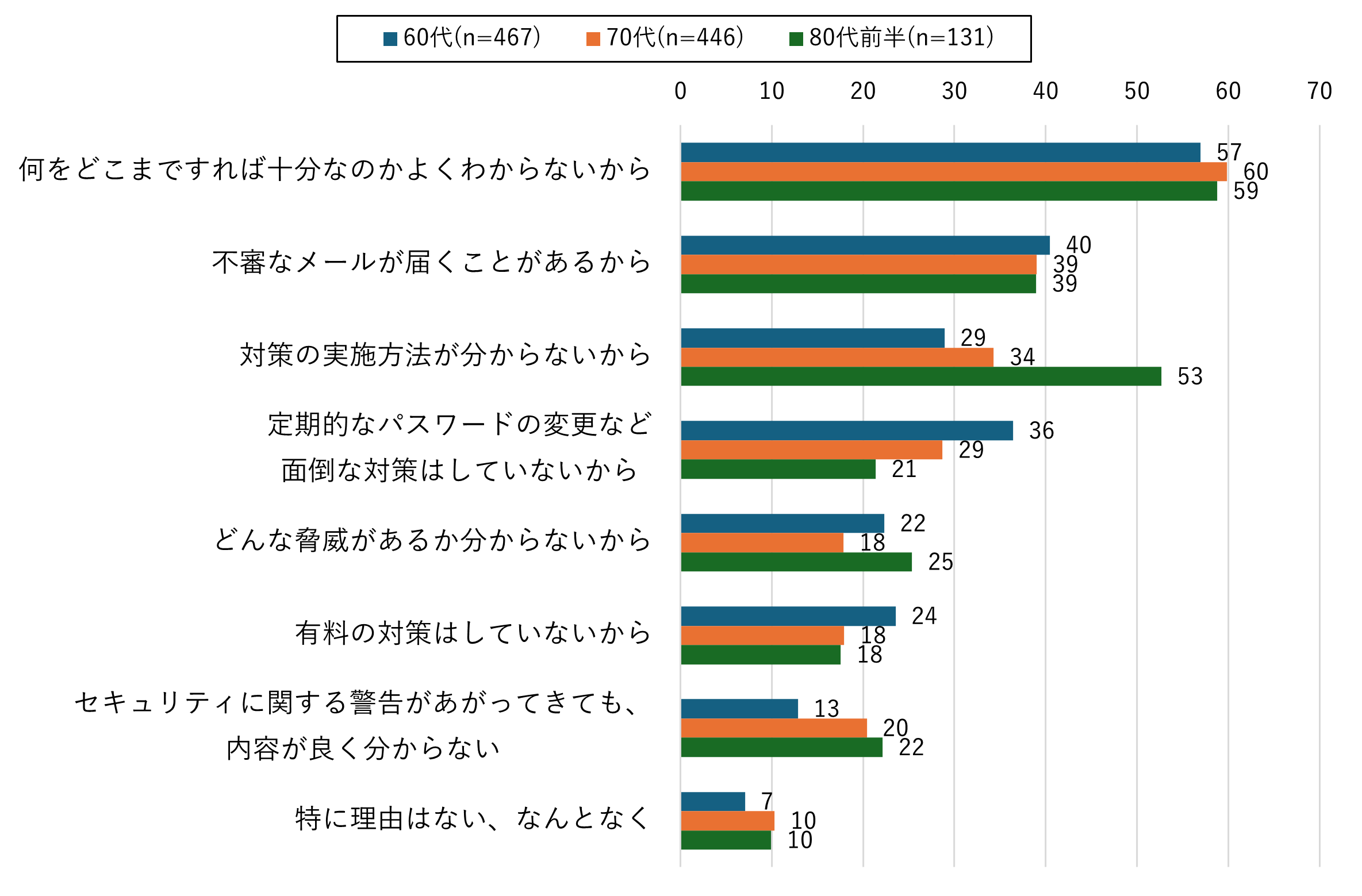 シニアでスマホのセキュリティ対策に不安を感じている理由「どこまでやればいいか分からない」が最多 年代が上がると「方法が分からない」が増える