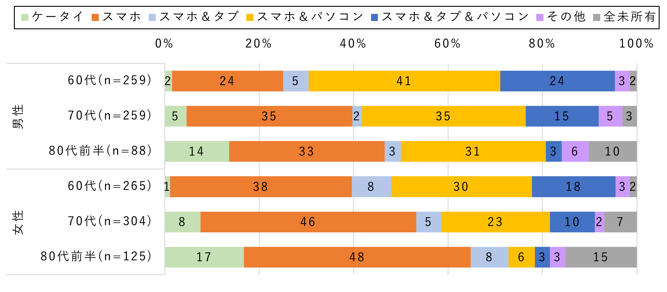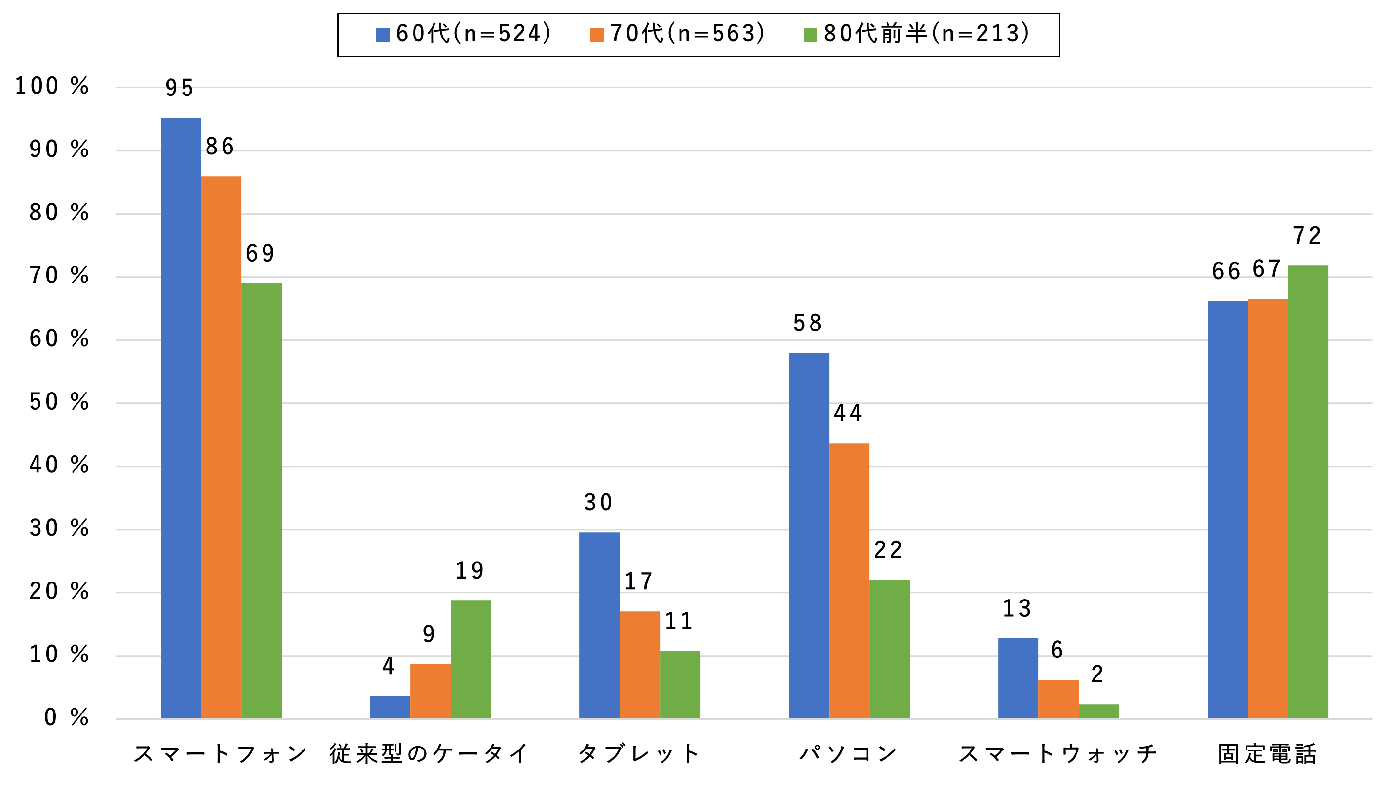 1. スマホの所有率はさらに上昇し60代は95%、70代は86%、80代前半でも69%