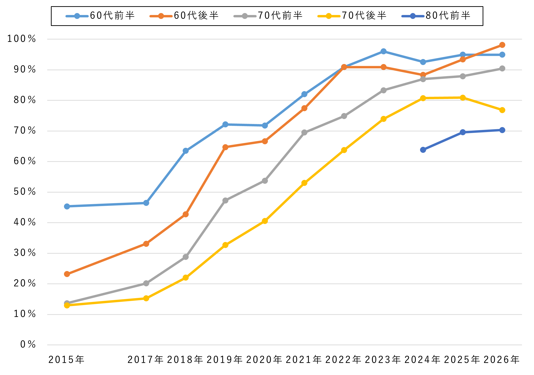 【シニア】スマホの所有率はさらに上昇し60代は95%、70代は86%、80代前半でも69%(2026年3月23日)(2026年3月23日)